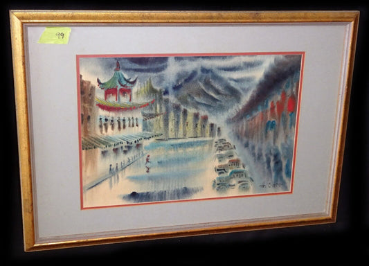 1940s Hawaii WC Painting "Chinatown Wo Fat Bldg" Hon Chew Hee (1906-1993)(Yir)