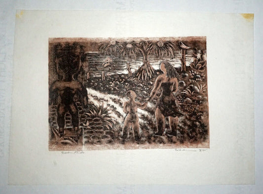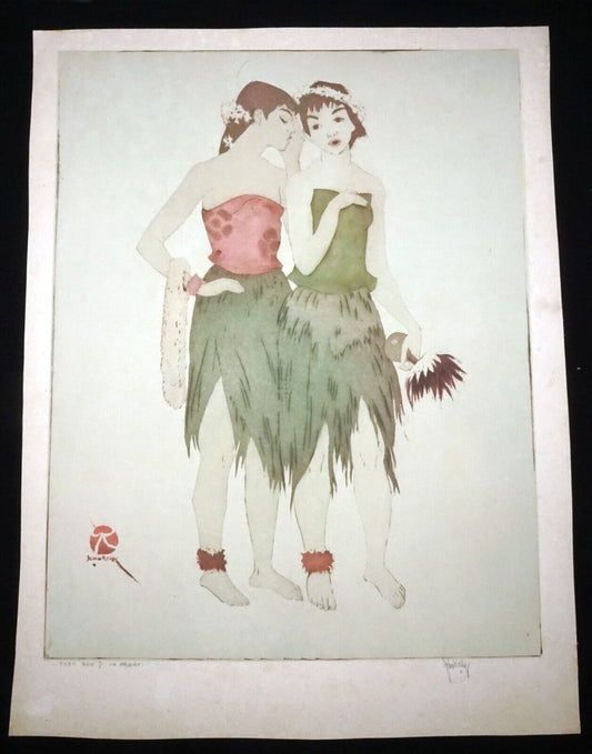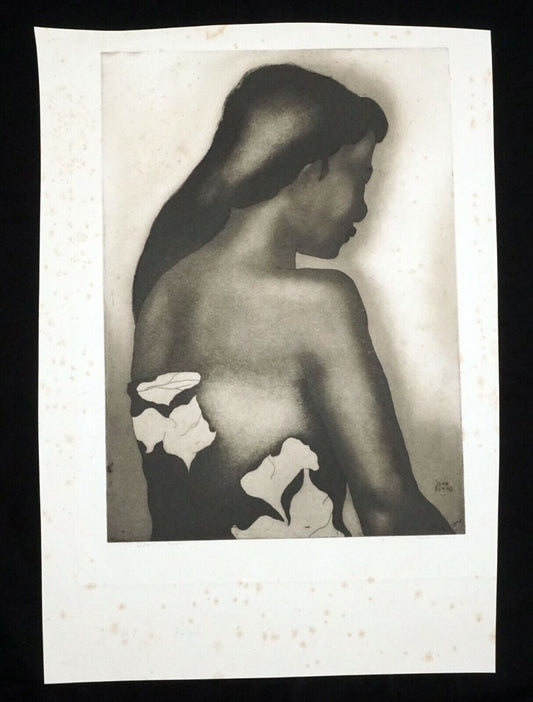 1940s Hawaii Etching Aquatint Print "Upalu" Young Girl by Jean Evans (Kel)
