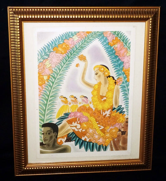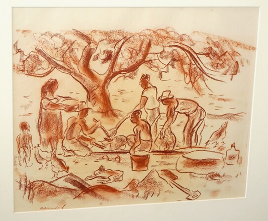 1940s Hawaii Conte Drawing Hukilau by Alexander Samuel MacLeod (1888-1975)(New)