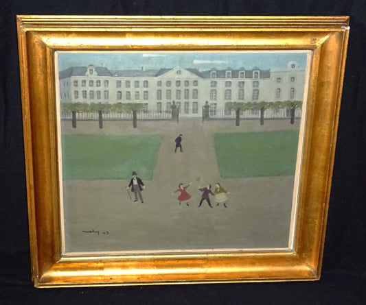 1943 Belgian Oil Painting Jeux D'Enfants du Parc by Émile Mahy (1903-1979)(Sto)