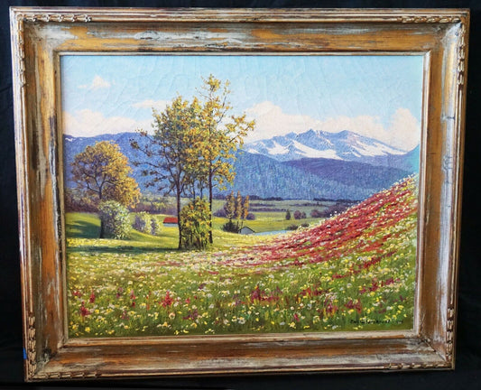 1949 Denmark Norway Oil Painting Mountains & Flowers by Paul Gyldenkrone (ChH)