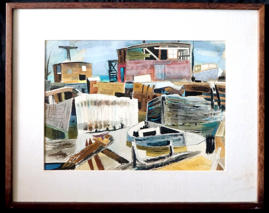 1948 Hawaii Watercolor Painting Boat Harbor II by Keiichi Kimura (1914-88) (PeNe