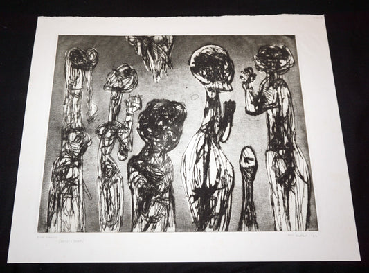 '62 California Abstract Etching Print "Sick Family" by William Hesthal (Mod)