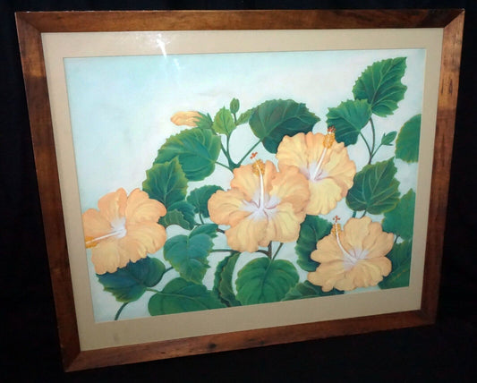 1950s Hawaii Koa Watercolor & Pastel Painting Hibiscus by Maude Horton (New)