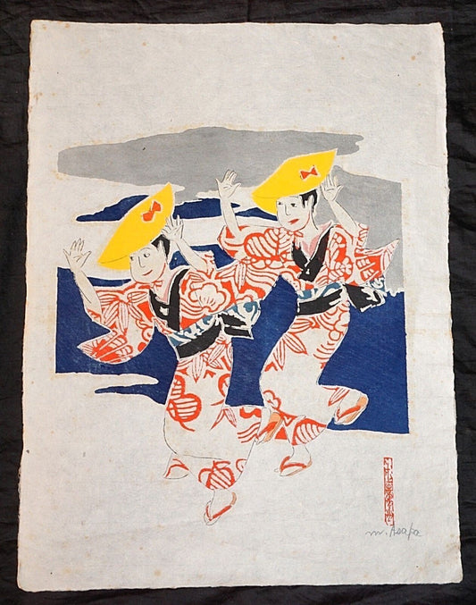 1950s Japanese Woodblock Print "Female Dancers" by Motoharu Asaka (***)