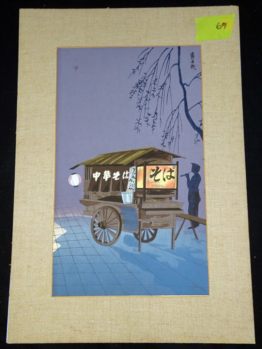 1950s Japanese WB Print "Cart & Flute Player" by Tomikichiro Tokuriki (Yir)