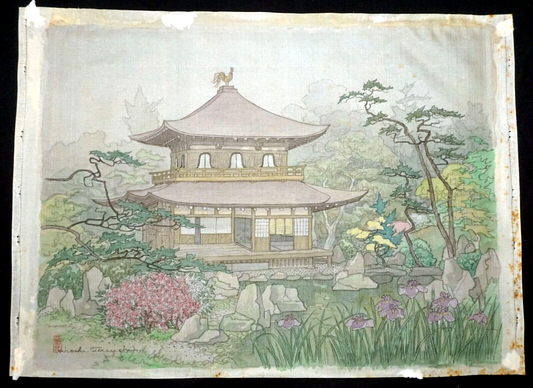 1950s Japanese Watercolor Silk Painting Golden Pavilion Hiroshi Terauchi (KiL)43