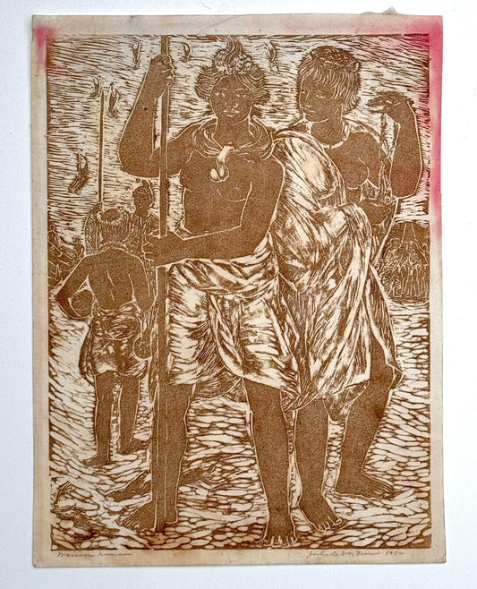 1952 Hawaiian Linocut "Warrior Woman" by Juliette Fraser (KoR)