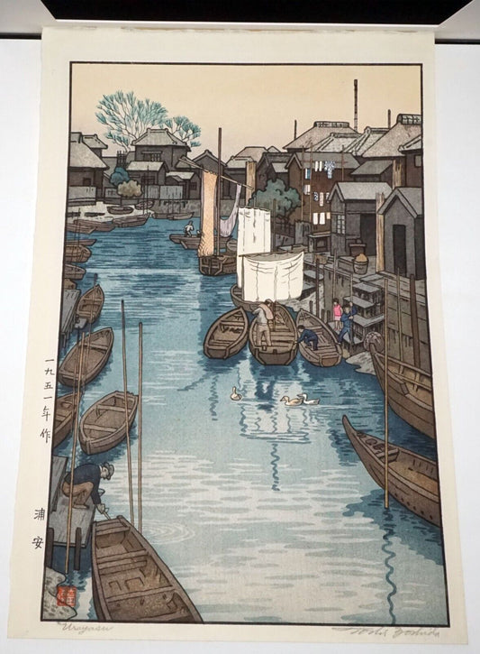 1951 Japanese Color Woodblock Print "Urayasu" by Toshi Yoshida (1911-1995) (FeH)