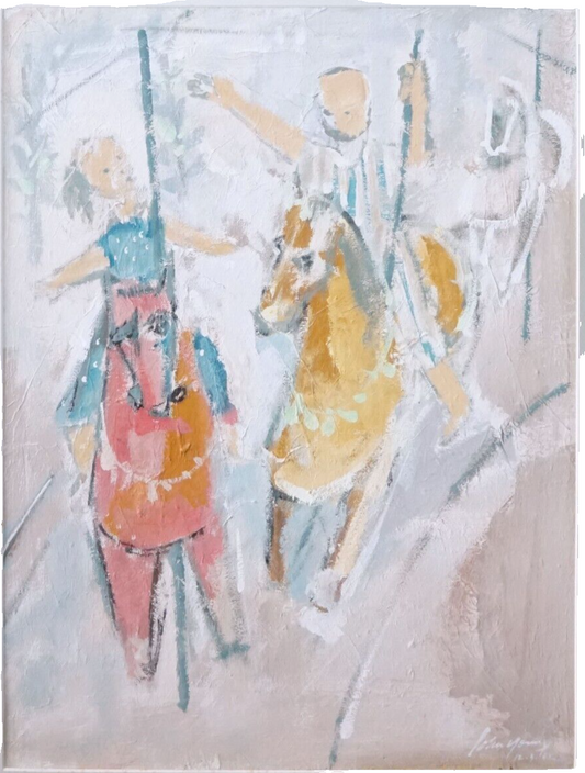 1952 Hawaii Chinese Watercolor Painting Merry-Go-Round by John Chin Young (TeJ)