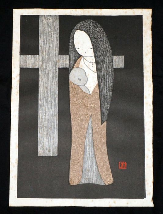1955 Japanese Woodblock Print Madonna & Child by Kawano Kaoru (1916-1965)(***)