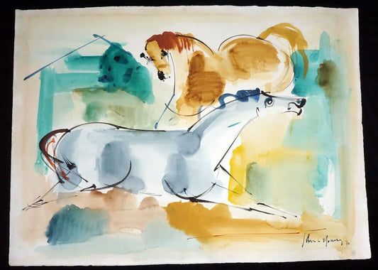 1952 Hawaii Watercolor Painting Two Horses by John C. Young (1909-1997) (CoJ)