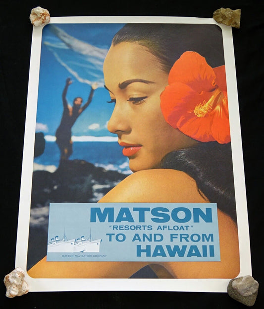 1960s Original Hawaii Matson Resorts Afloat to & from Hawaii Poster (HoT)#50