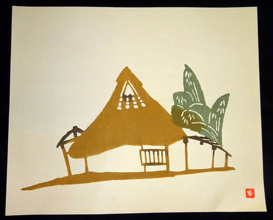 1960s Japanese Woodblock Print Thatched Roof Inagaki Toshijiro (1902-1963)(Fuj)
