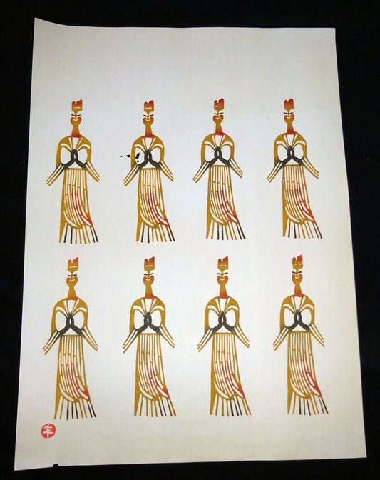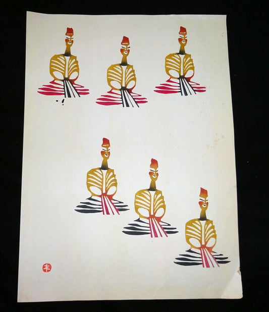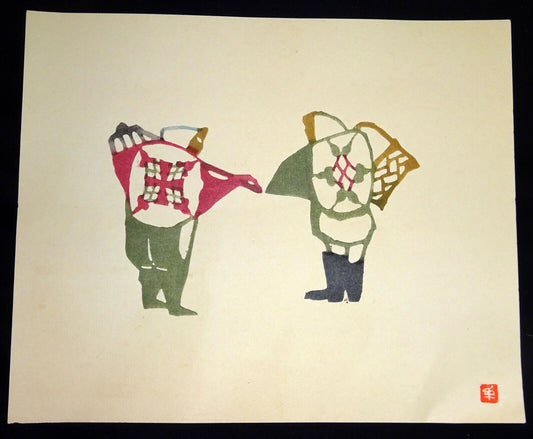 1960s Japanese Woodblock Print Seated Figures Inagaki Toshijiro (1902-1963)(Fuj)