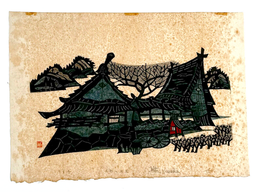 1964 Japanese Woodblock Print Thatched Roof Home by Miki Kamada 5/100 (AHB)