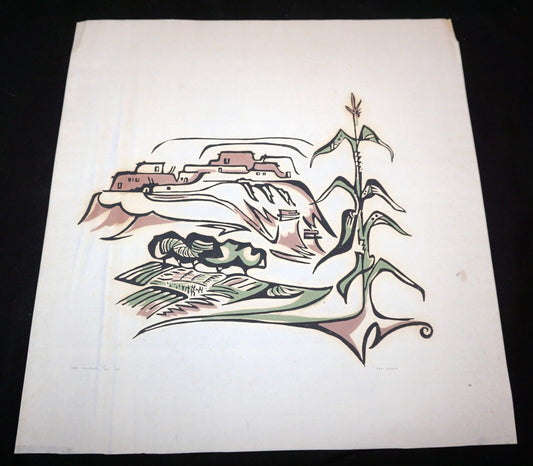 1962 Arizona Serigraph Print 1/30 "Hopi Village" by Tom Bahti (1926-1972) (Mod)