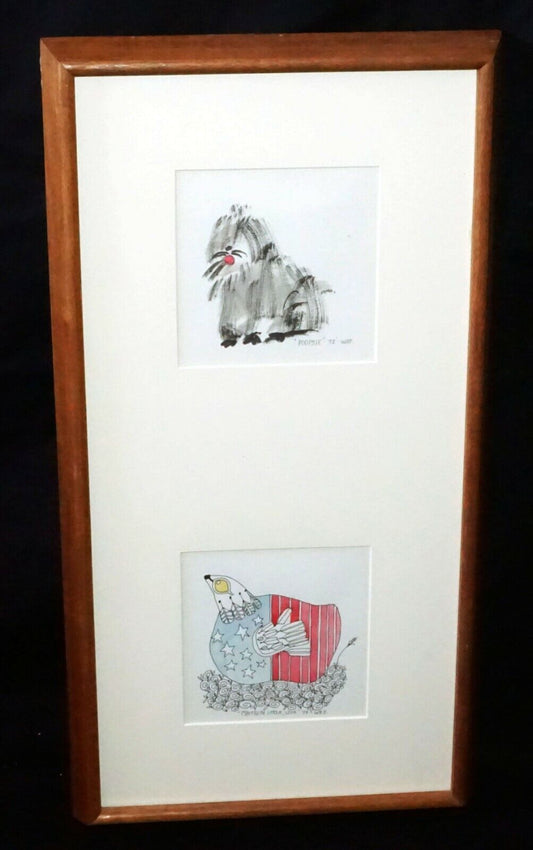 1972 US Koa Framed 2x Color Print Whimsical Grouping signed W.R.T. (CWo)
