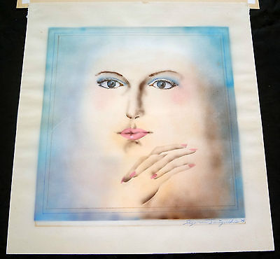 1974 JAPANESE ABSTRACT PAINTING "A WOMANS FACE" by SHIGERU TANIGUCHI (Chac)