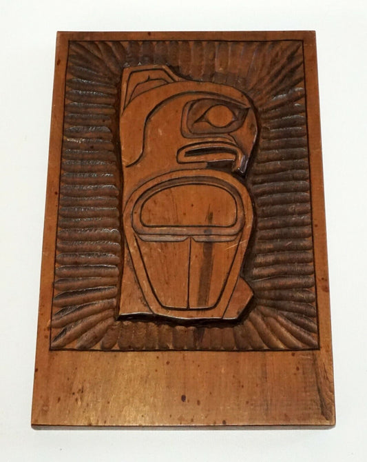 1973 N.W. Coast Kwakiutl Carved Wooden Plaque by Dennis Matilpi (B. 1951)(Nil)