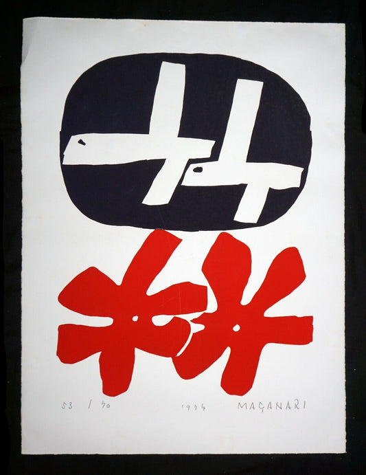 1974 Japanese Print 53/70 Abstract Calligraphy by Masanari Murai (1905-1999)(Hic