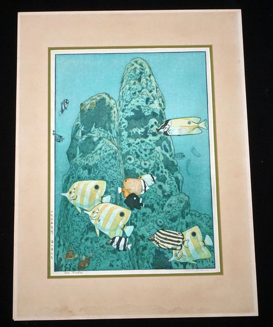 1975 Japanese Color Woodblock Print Sea Fishes by Toshi Yoshida (1911-1995)(FeH)