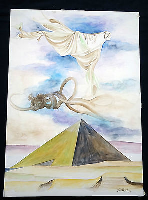 1978 Egyptian WC Painting "Pyramid, Robe, Rope" by Youssry (Stea)