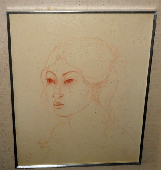 1977 Bali Pastel Portrait Painting "Young Woman" by Hans Snel (1925-1998)(***)