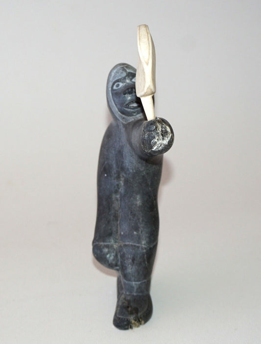 1979 Eskimo Stone Carved Sculpture Figure Holding Carved Object signed (Kor)