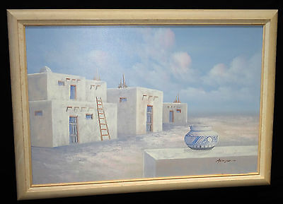 1980s SOUTH WESTERN OIL PAINTING "ADOBE PUEBLO" by JOSE ARICOPA (***)