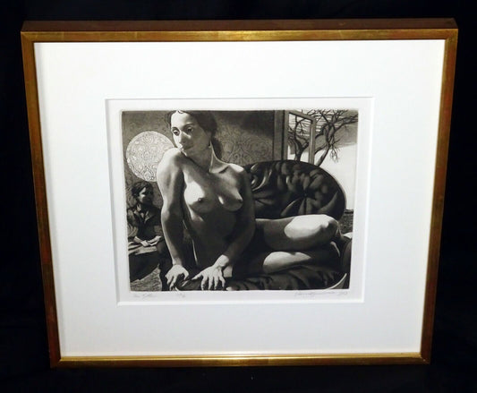 1983 US Framed Etching Print "The Letter" Female Nude by David Bumbeck (AHB)