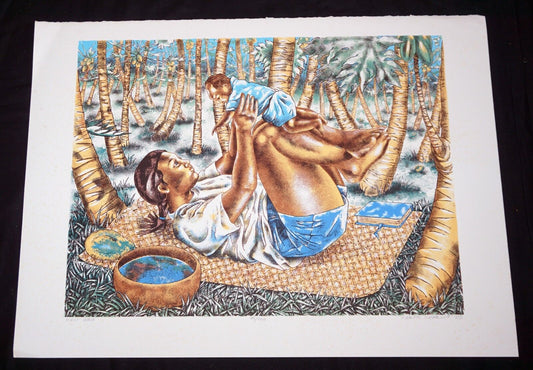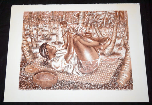1985 Hawaii Litho Print 77/100 "First Born Baby II" by Martin Charlot (Mod)