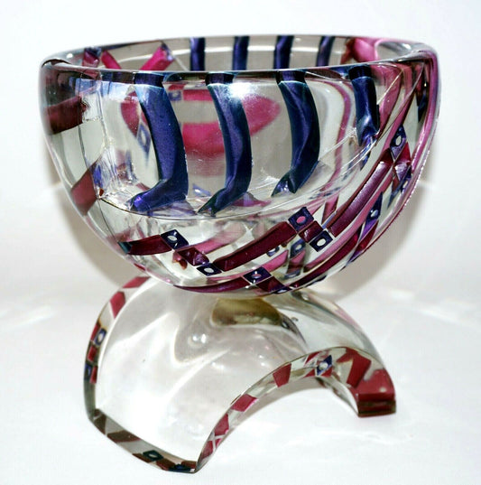 1983 US Two Part Art Glass Sculpture Balanced Bowl by Concetta Mason (MeG)