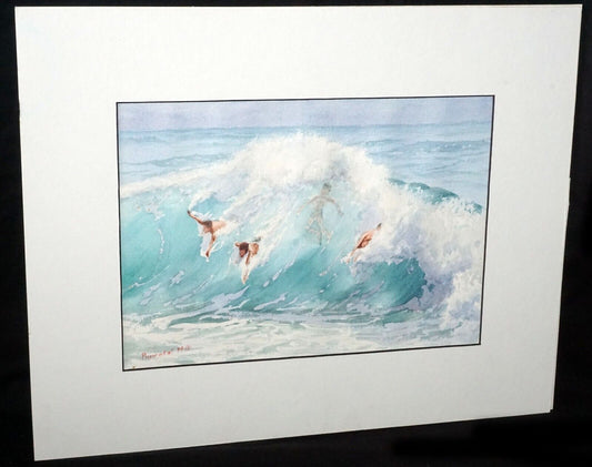 1996 Hawaii Watercolor Painting "Body Surfing@Sandy Beach" by Joe Pimental (FeH)