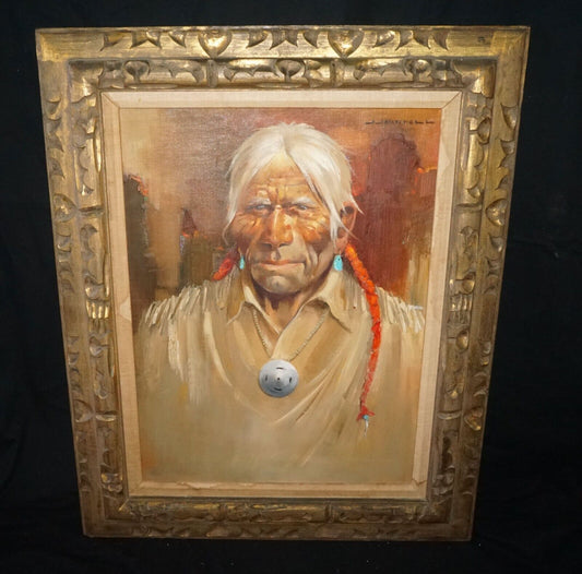 19C American Oil on Canvas- American Indian By J.J. Mitchell (AHB)