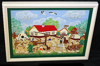 1999 Hungary Oil Painting "Village Scene" by Raffaine Hajik Katalin (Chab)