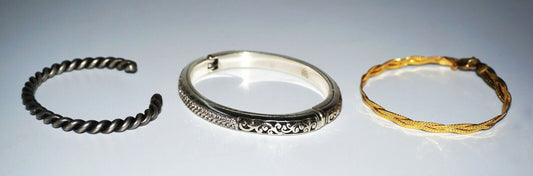 2+1x Vintage Sterling Silver Bracelet & Cuff + Plated Bangle Mixed Lot (NoN)BN4