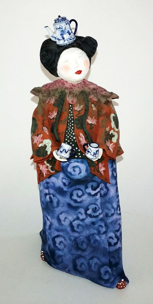 2000 Hawaii Pottery Sculpture Chinese Tang Waitress by Vicky Chock (B.1943)(CWo)