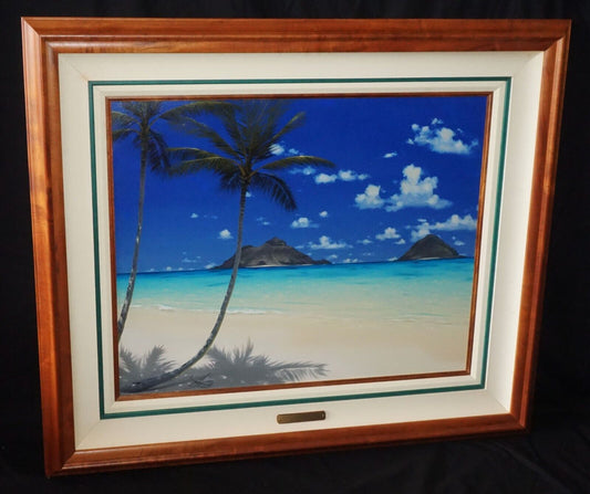 2000 Hawaii Koa Framed Oil Painting "Lanikai Kailua Beach" by Al Hogue (StR)