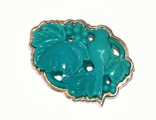 20 Chinese Sterling Silver Set Turquoise-like Bird & Leaf Motif Brooch (RgR