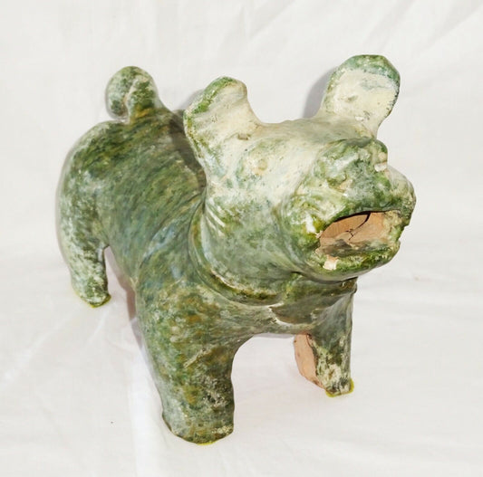 2000 Year Old Chinese Han Green Glaze Mortuary Figure Stout Dog Sculpture (DaM)