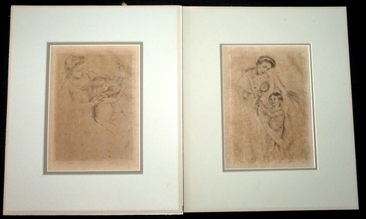 2Pc 1905 French/US Etching Prints "Hand Mirror" by Mary Cassatt (1844–1926)(FeH)