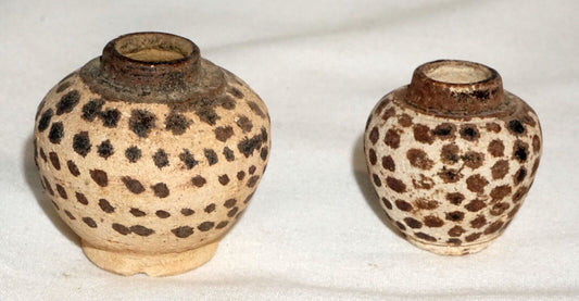 2Pc 15C Thailand Sukhothai Sawankhalok Brown Dotted Glazed Jarlet (JSt)28/30