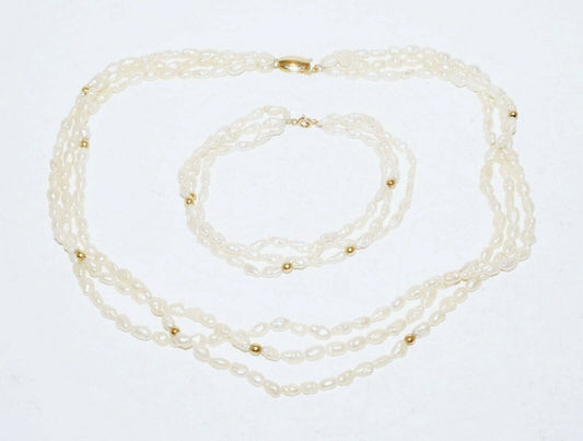 2Pc 14k Yellow Gold & Baroque Freshwater Pearl Necklace & Bracelet (KaT)#27