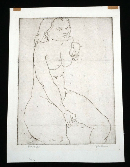 2Pc 1940s Hawaii Etching Prints "Hortense & Head of a Girl" by Jean Evans (Kel)