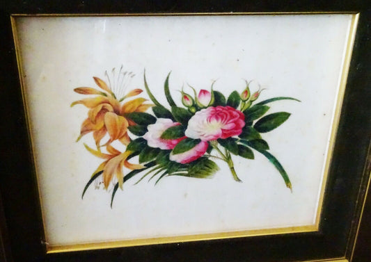 2Pc 19C Chinese Framed Export Floral Color Pith Painting Lot (AHB)