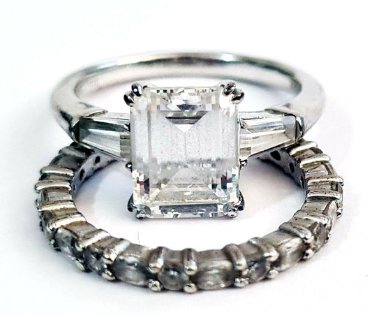 2Pc Vintage Sterling Silver & Cubic Zirconia Rings Sz. 5.5/6 (WMH)3f