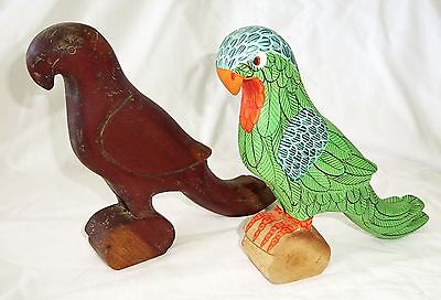2x 1980s Haitian Wooden Parrot Bird Carvings Sculptures (Stea)