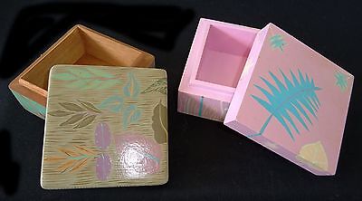 2x 1980s Haitian Wooden Covered Boxes w. Painted Floral Motif (Stea)