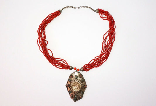 2x Nepal/Tibet Style Tribal Bead Necklaces w. Snuff bottle/Silver Pendant (Gre)